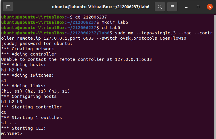 sudo mn --topo=single,3 --mac --controller=remote,ip=127.0.0.1,port=6633 --switch ovsk,protocols=OpenFlow10