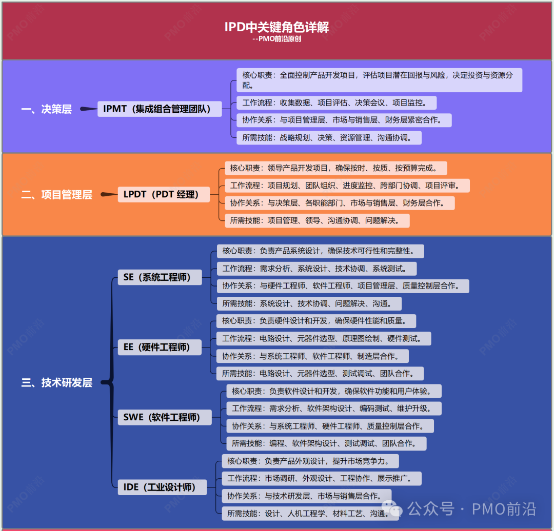 IPD端到端流程涉及很多角色,IPMT、LPDT、SE、EE、SWE、IDE、AME、MOPS、PP、PRO、PROPDT、PQA、MKTPDT、MSE、FF、FPDT等等,这些角色都有什么职责,相互之间如何协作,需要什么能力.
