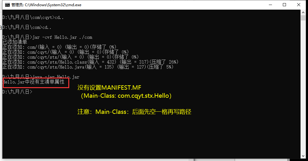 Main-Class: Hello //注意:冒号后面一个空格再写Hello -