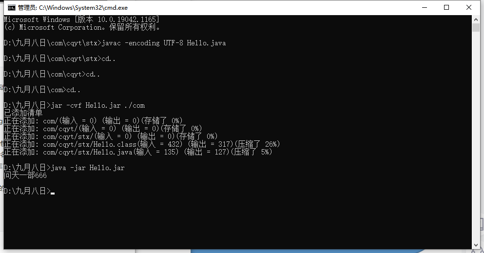 2.打包命令 jar -cvf Hello.jar ./Hello.class