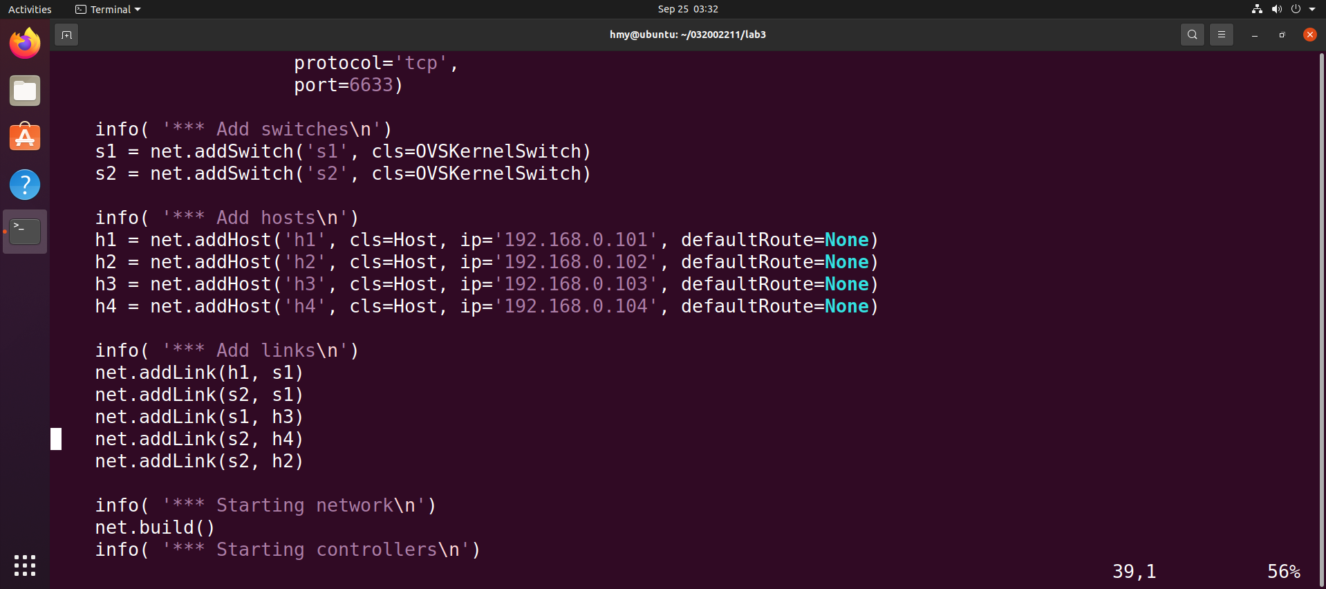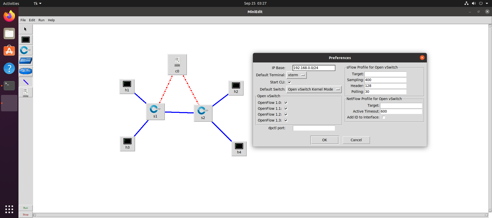 - 搭建下图所示拓扑,完成相关 IP 配置,并实现主机与主机之间的 IP 通信。用抓包软件获取控制器与交换机之间的通信数据。