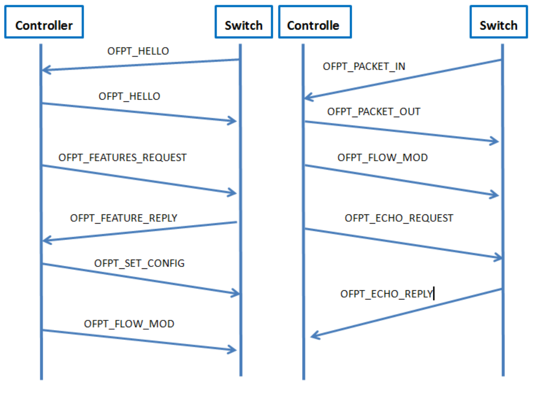 OFPT_HELLO后,双方建立连接使用openflow1.0协议,HELLO就是使用来协商控制器和交换机之间openflow协议的版本号的消