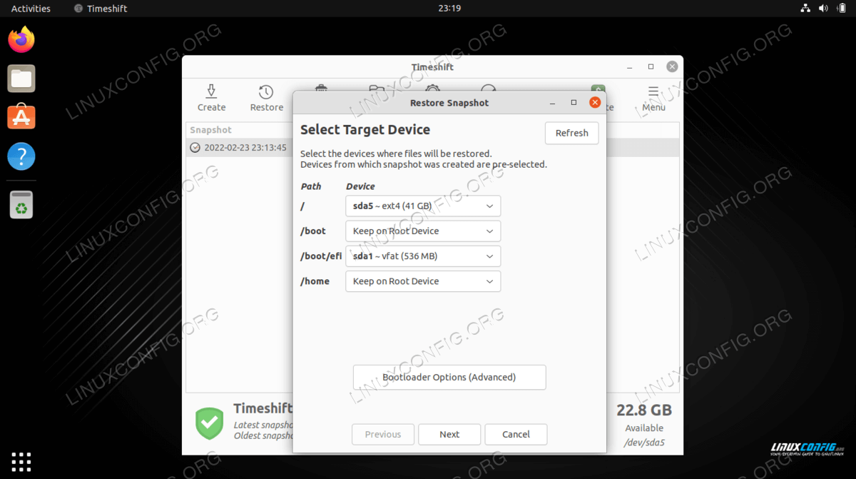 本教程的目的是展示如何在 Ubuntu 22.04 Jammy Jellyfish 上安装 Timeshift 并使用该程序执行系统备份,然后从该备份恢复系统。