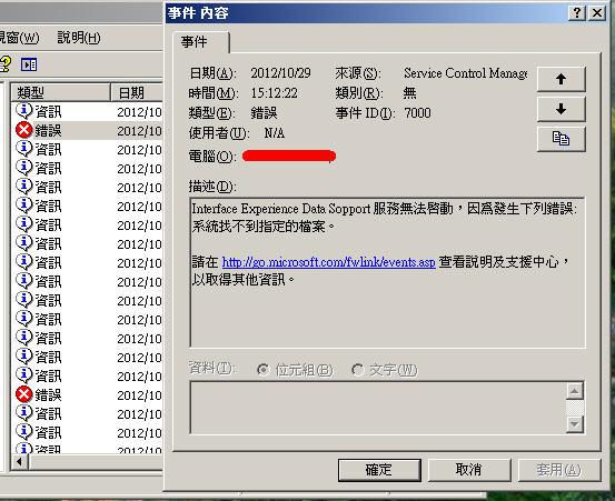 对的,和系统事件中报的错误一样:系统找不到指定的档案。