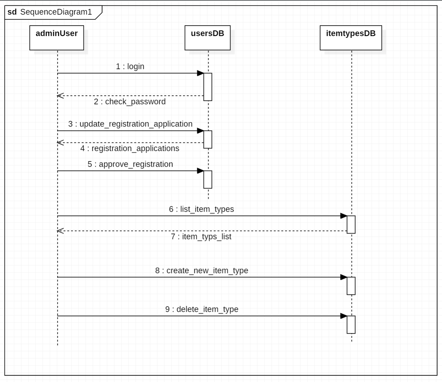 管理员登录后进入管理员操作界面,允许管理员创建新的物品类型,删除物品类型,以及批准用户注册申请。