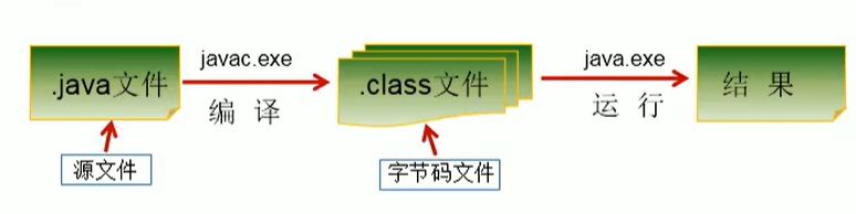 - 编译:使用javac.exe命令编译我们的Java源文件。格式:Javac 源文件名.java