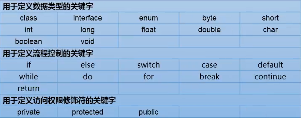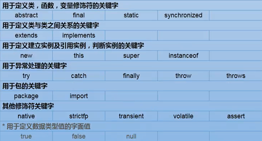 定义:被Java语言赋予了特殊含义,用做专门用途的字符串(单词)