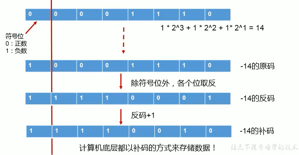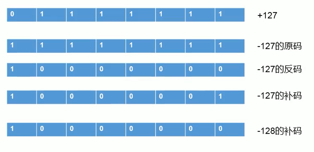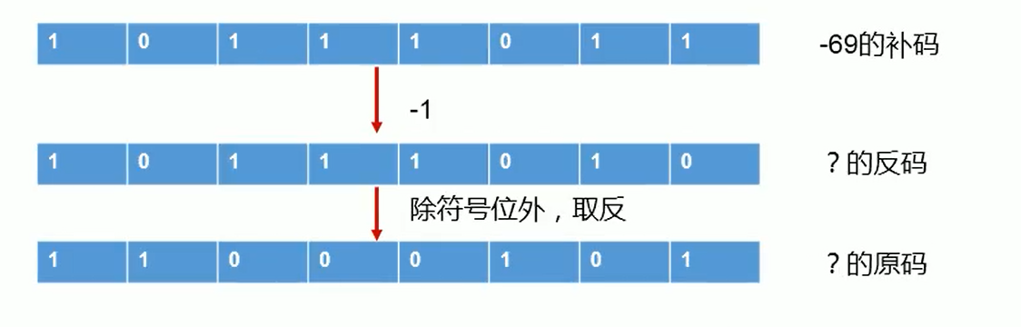 - 负数的反码:是对源码按位取反,只是最高位(符号位)确定为1