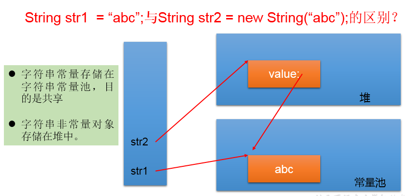 2.当对现的字符串进行连接操作时,也需要重新指定内存区域赋值,不能使用原有的value进行赋值。