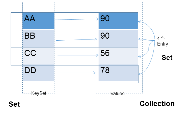 Map中的entry:无序的、不可重复的,使用Set存储所的entry