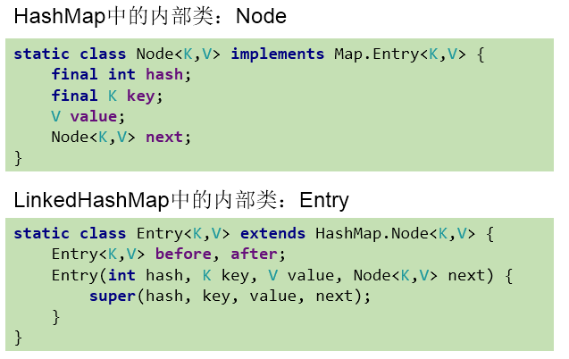 区别就在于:LinkedHashMap内部提供了Entry,替换HashMap中的Node.