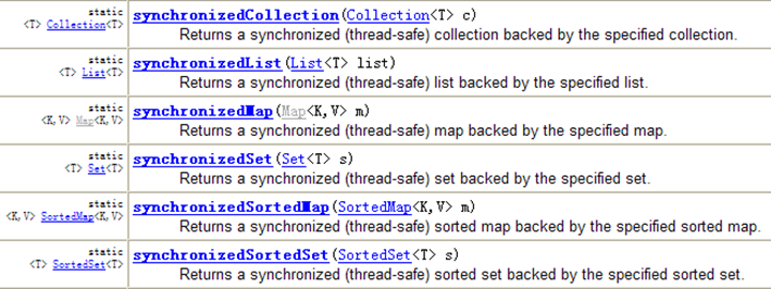 使用synchronizedList(List list) 和 synchronizedMap(Map map)