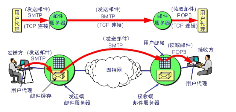 对于邮件,我们不仅要会发送,还需要接收,此时就要用到POP3协议(邮局协议第三版 Post Office Protocol version3),由RFC1939定义。它也是TCP/IP协议族中的一员,主要用于支持使用客户端远程管理在服务器上的电子邮件。