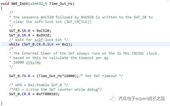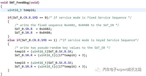 如下为MPC574xP的典型SWT的喂狗函数:
