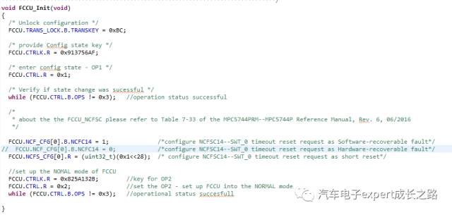 因此, 典型的MPC574xP系列MCUSWT相关FCCU初始化配置函数如下: