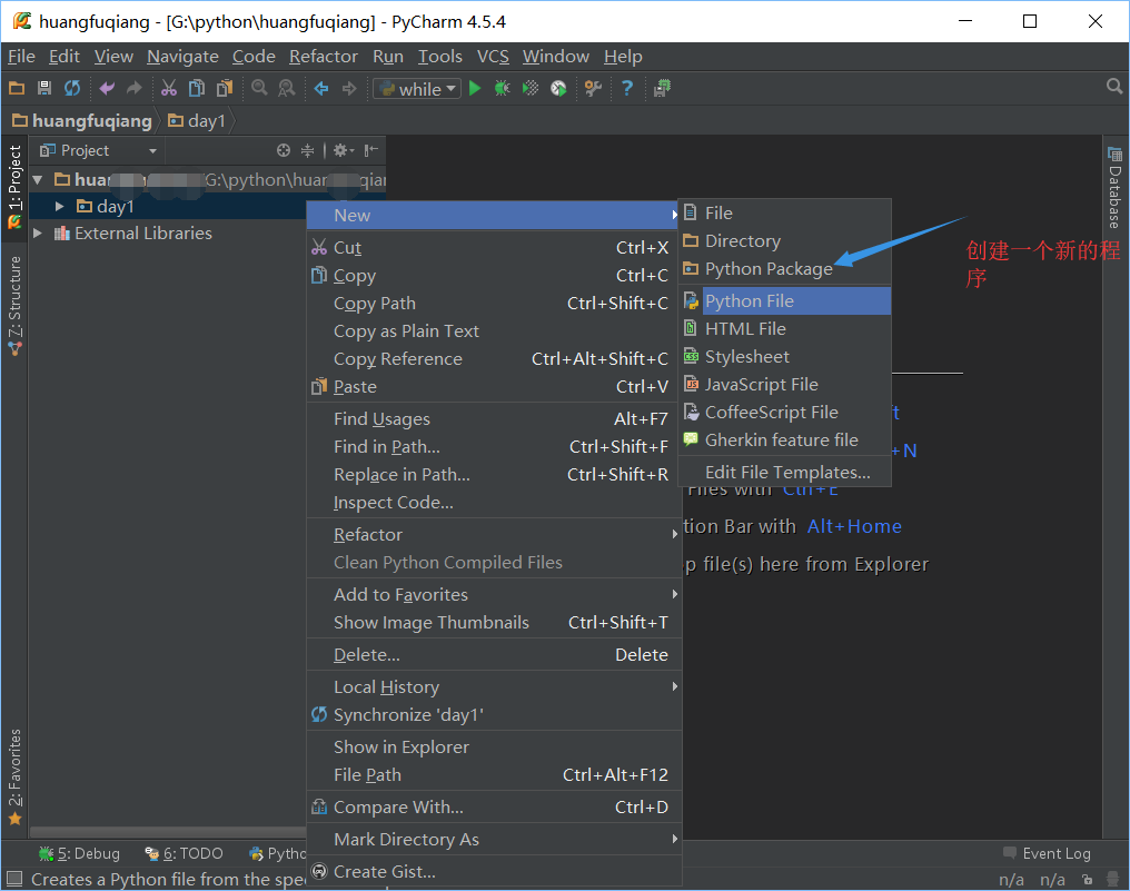 以后每天都创建一个新的目录这次取名叫day1(第一天)然后我们在该目录下创建一个程序