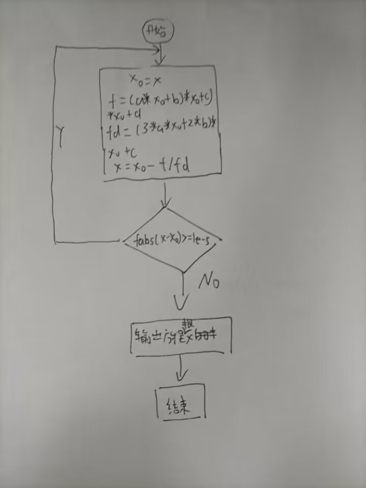 1.问题:编写用牛顿迭代法求方程根的函数。方程为a*x*x*x+b*x*x+c*x+d=0,系数a,b,c,d由主函数输入。求x在1附近的一个实根。求出根后,有主函数输出。