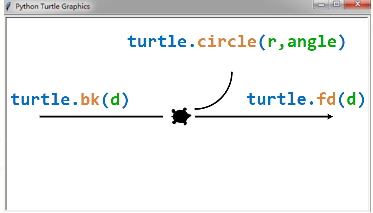 - turtle.forward(d),别名turtle.fd(d),d为行进距离,可为负数