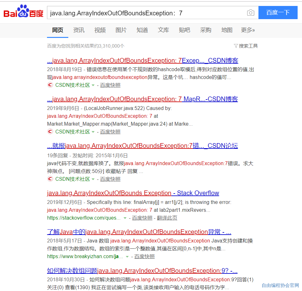 意思是在main线程中发生了错误:java.lang.数组越界异常:下标到7了越界了 (看不懂可以复制去百度翻译等翻译软件翻译,见得多了就认识了记住了)