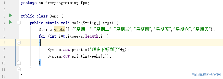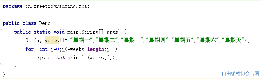 第7行代码:System.out.println(weeks[i]);