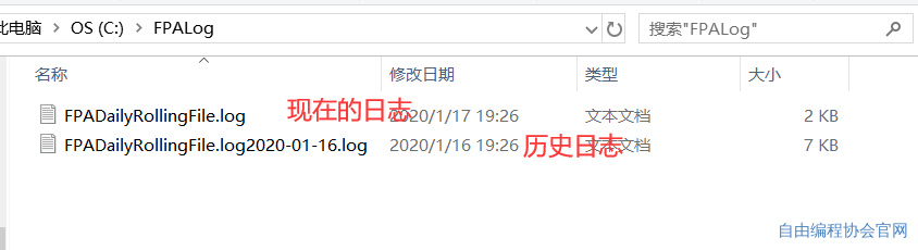 #比如上面的文件是FPADailyRollingFile.log,那么比如今天是2020年1月16日,到了明天,那么历史日志就会存在FPADailyRollingFile.log2020-01-16.log,可以参照我下面的截图理解