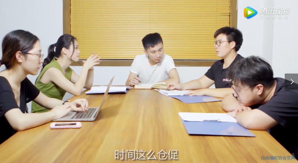 开会时,左边的第二位女同事提出了一个方案,问其他同事有没有意见?