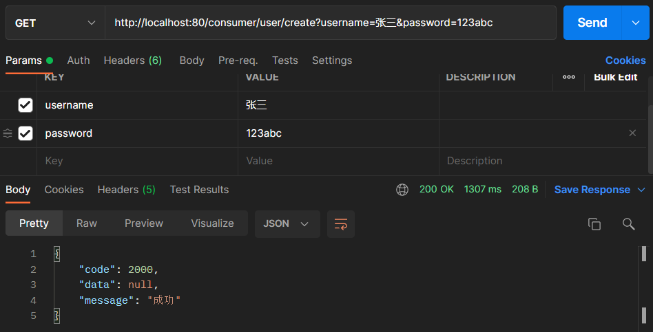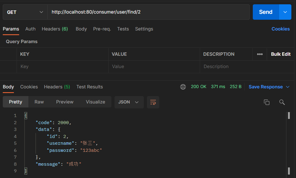 打开PostMan进行测试服务消费者: