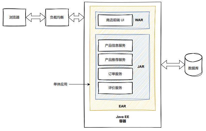 - 单体应用架构(服务器、数据库运行在一台机器上)