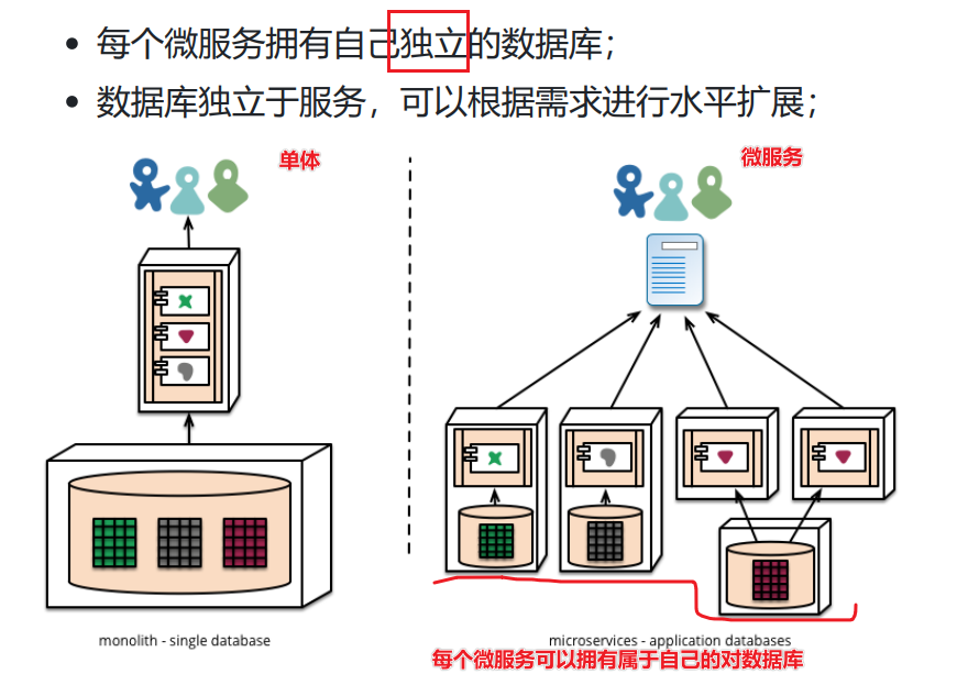 - 微服务架构(“微”=> 拆分成小的服务单元)