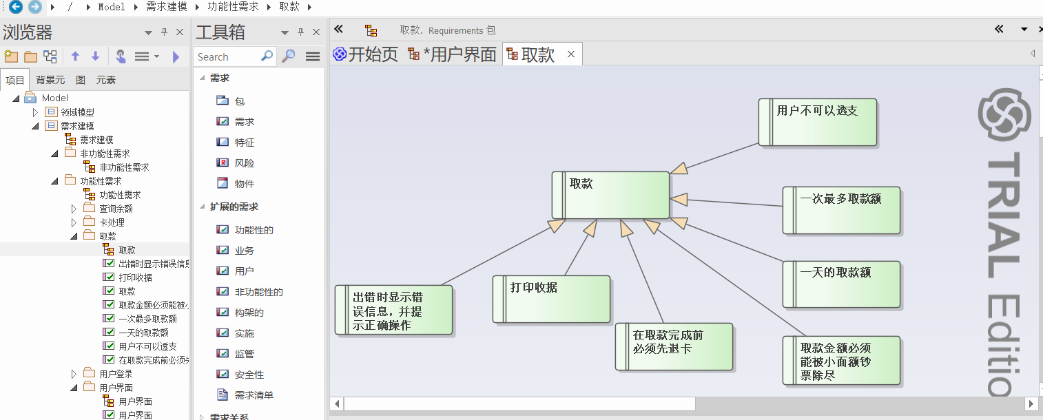 2. 采用EA工具完成以下ATM示例系统的UML模型的建立。
