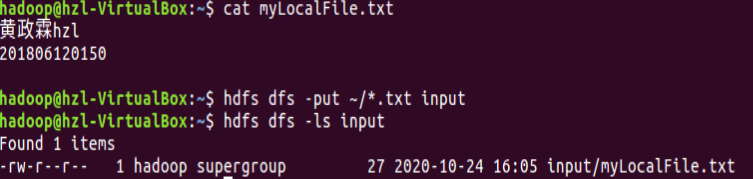 本地文件系统创建一个文件,输入带姓名学号信息。