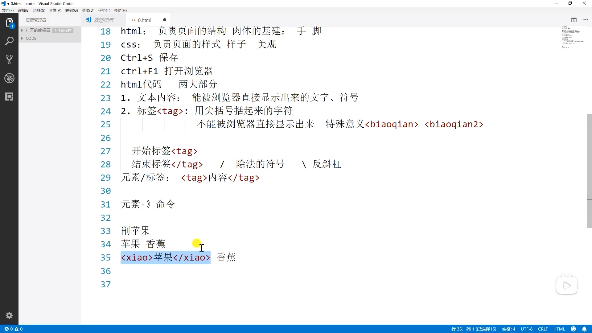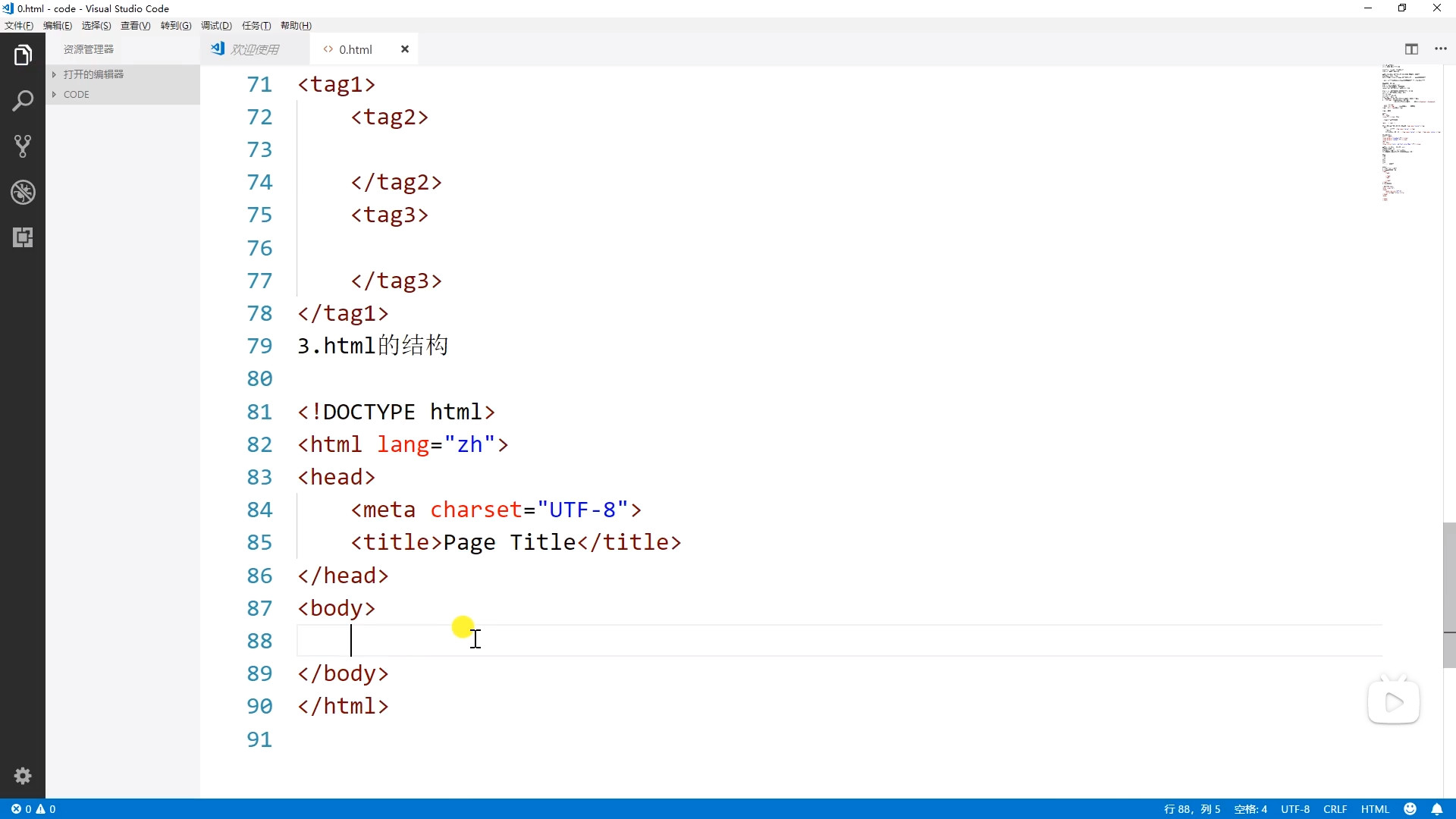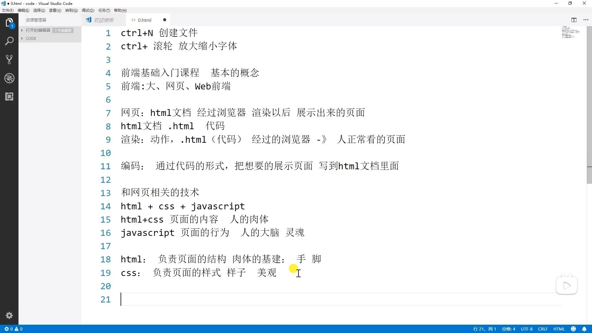 2.创建第一个HTML文件,并让它在浏览器里面显示为HelloWorld