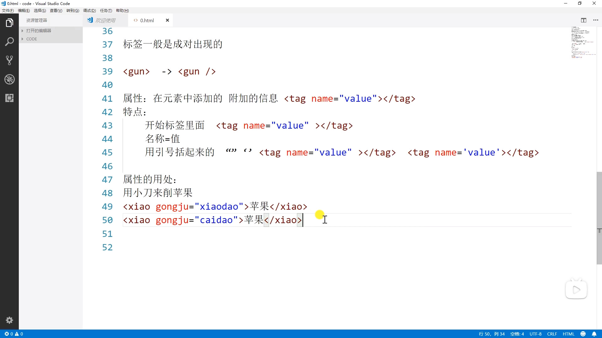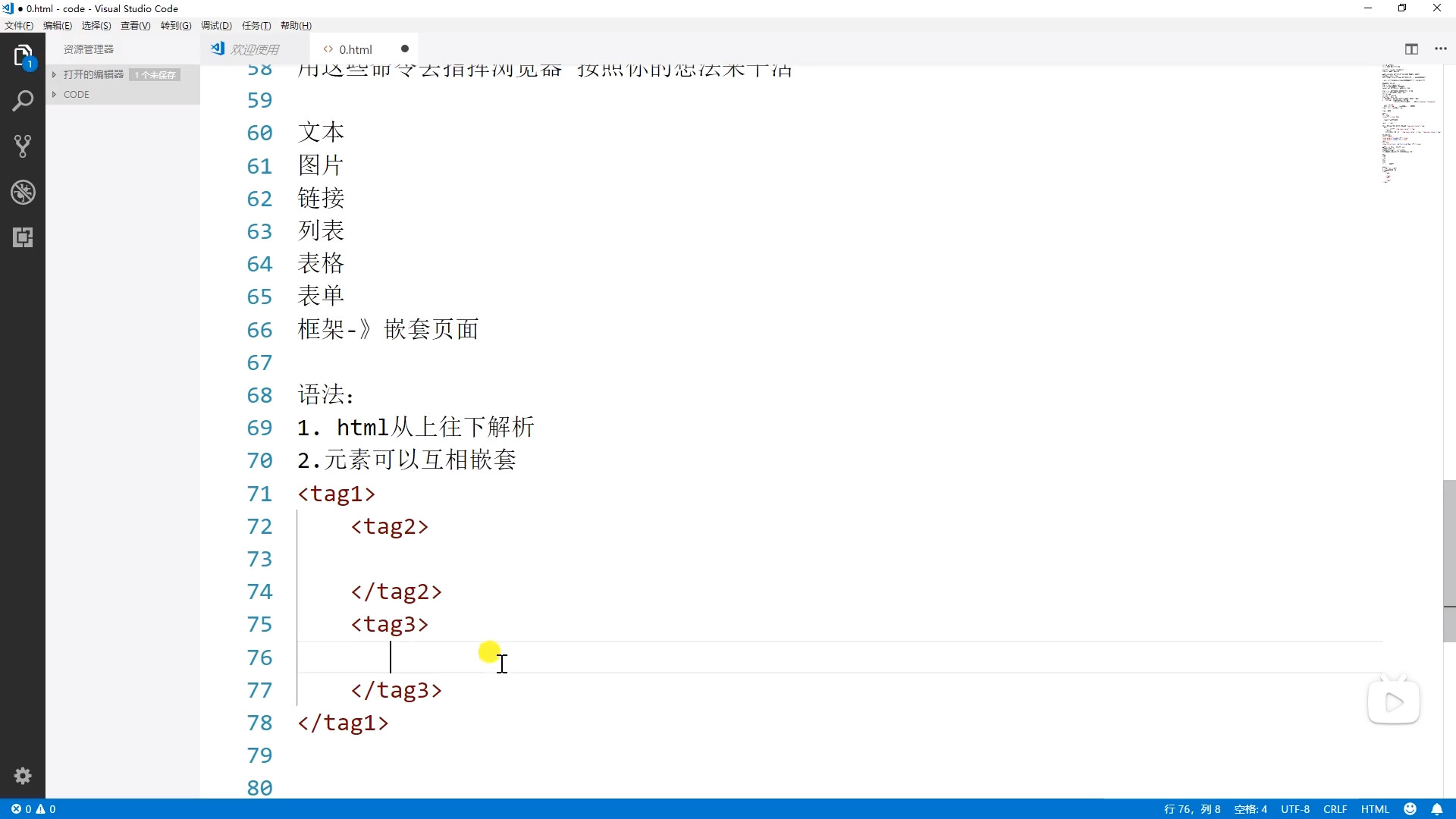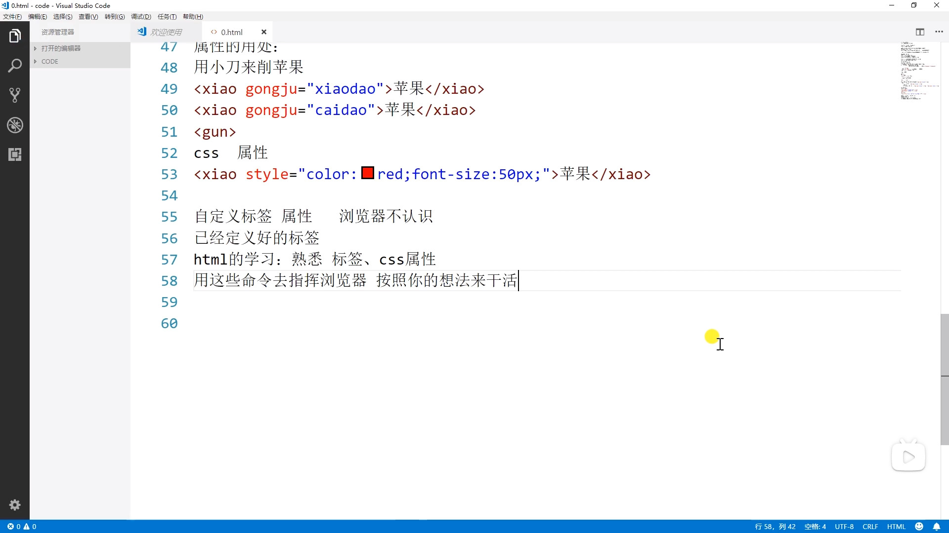 2.创建第一个HTML文件,并让它在浏览器里面显示为HelloWorld