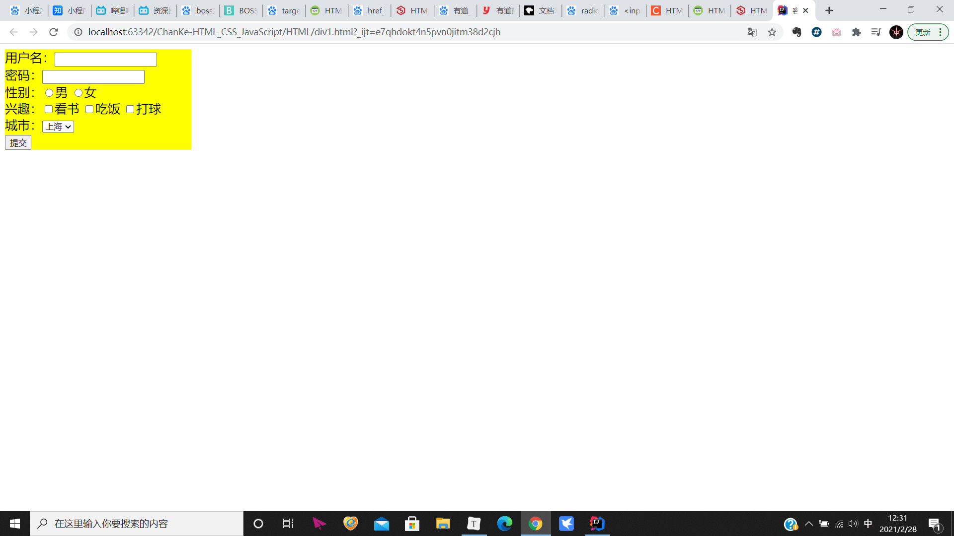 兴趣:<input type="checkbox" name="ckb" value="kanshu">看书