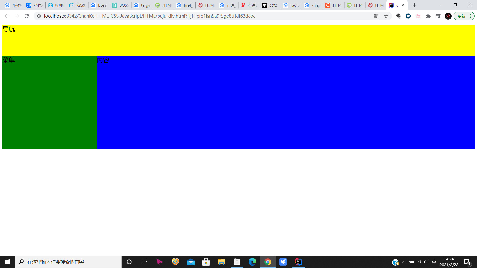 <div style="background: green;width: 20%;height: 300px;float: left">菜单</div>