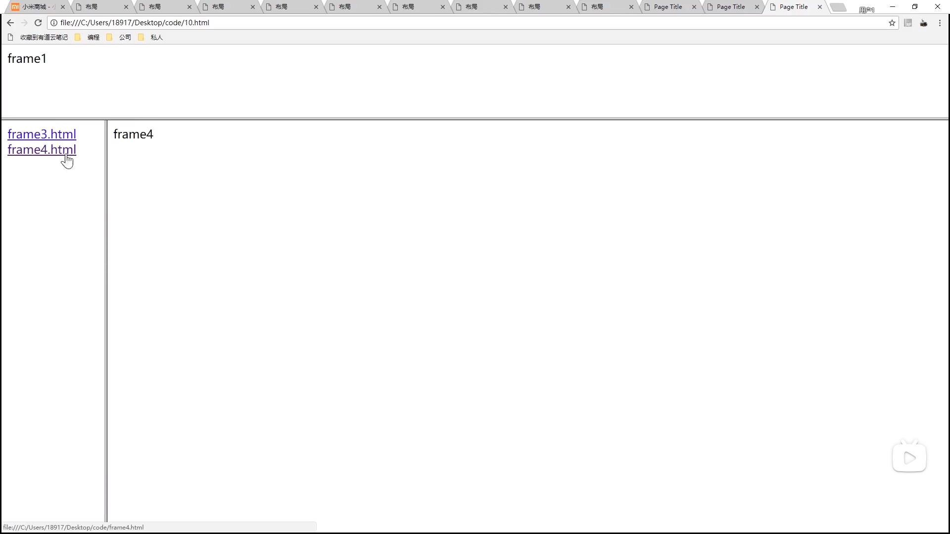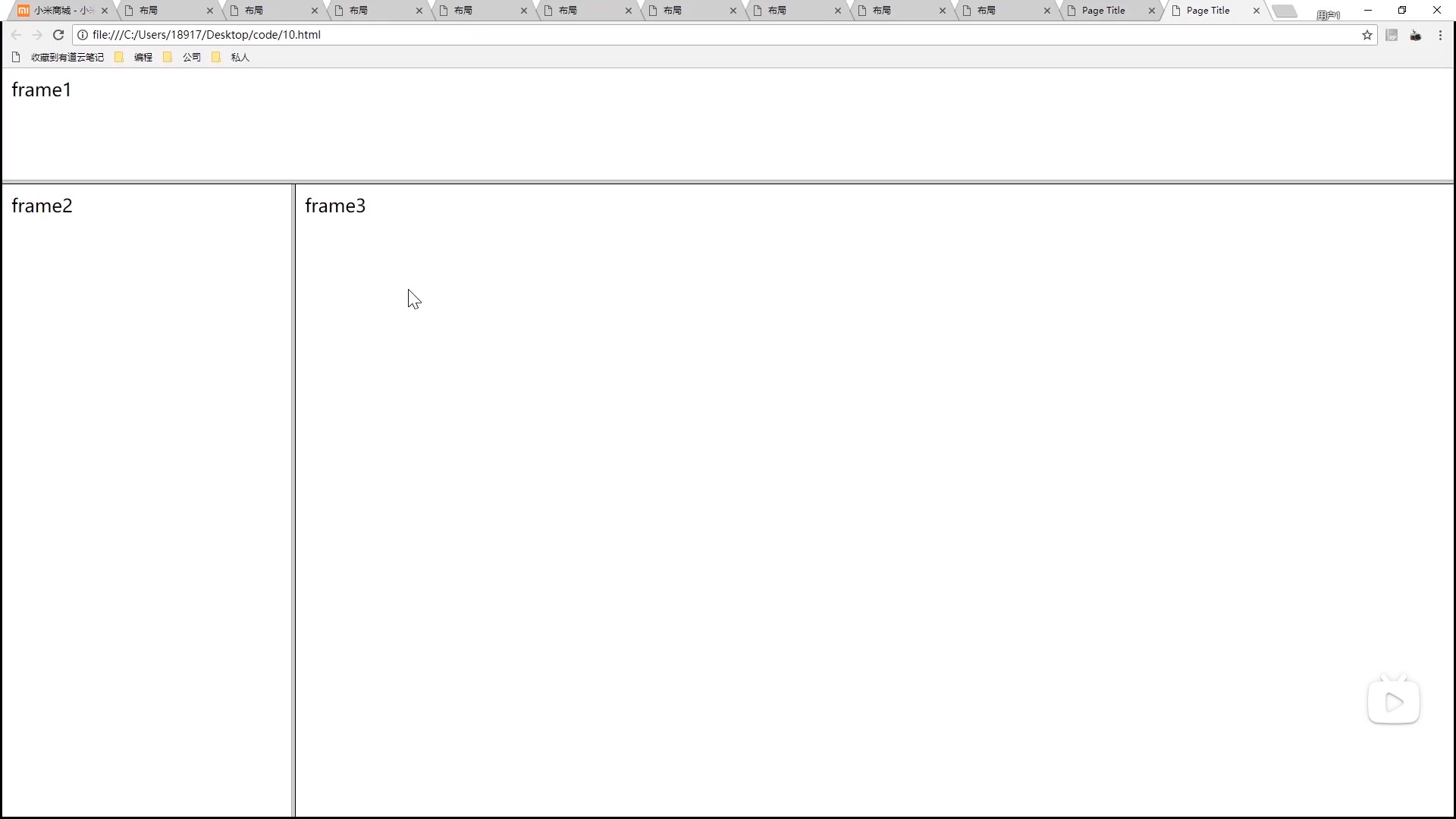 frameset——将页面分为几个部分,每个部分都可以作为一个单独的页面