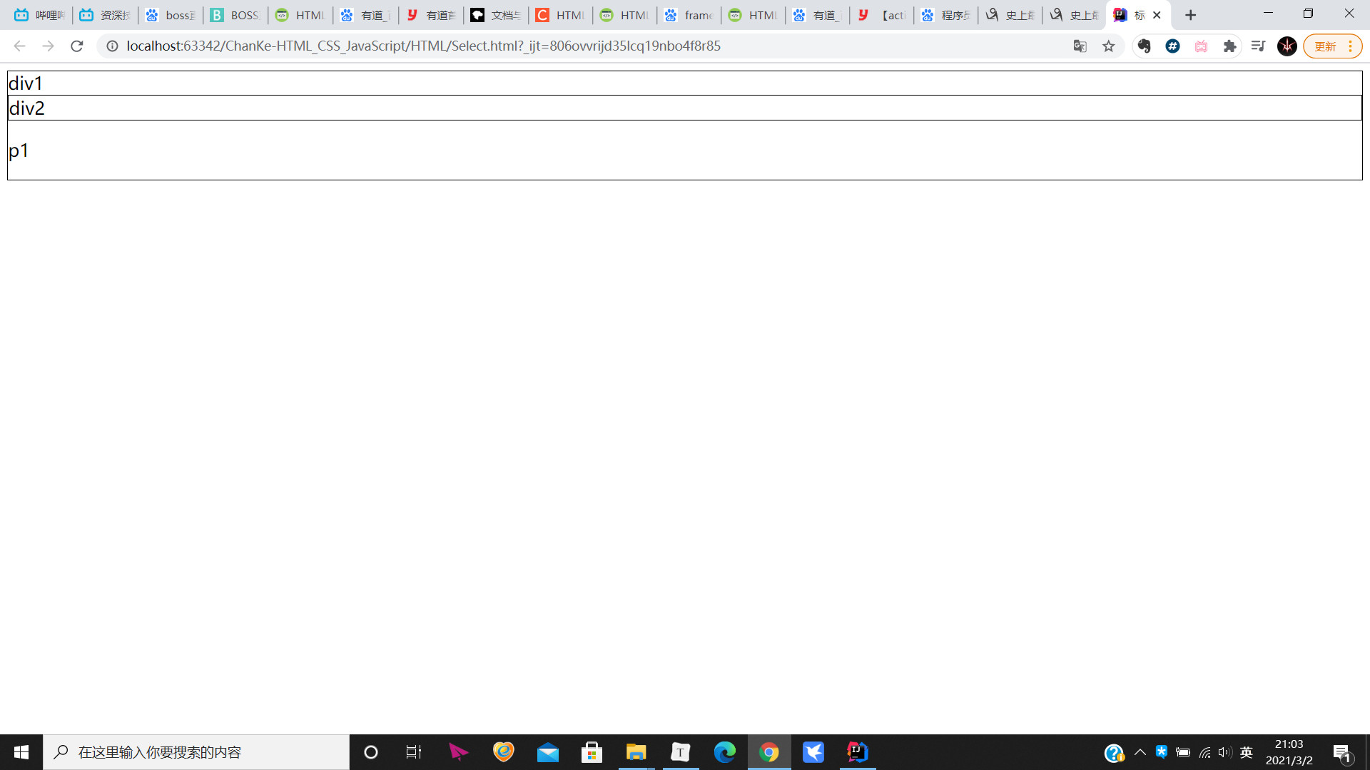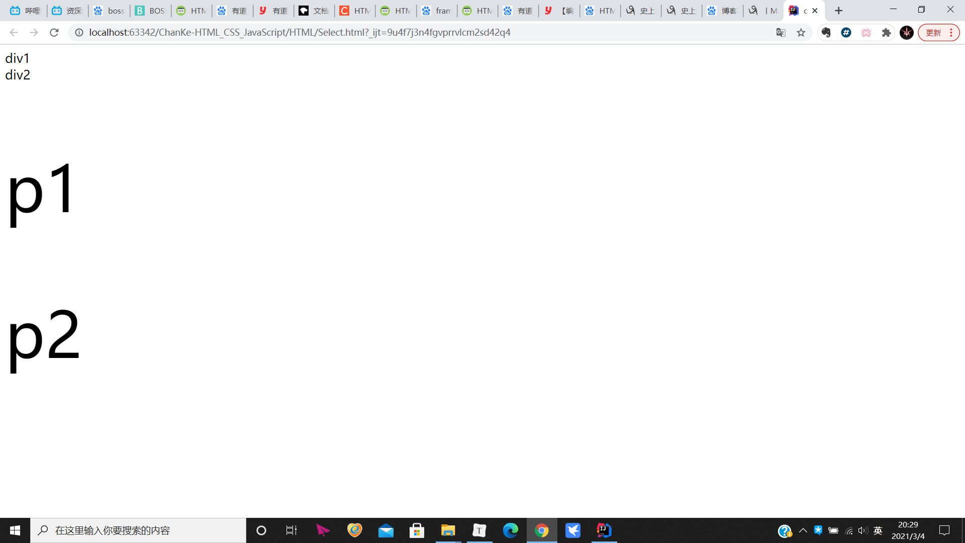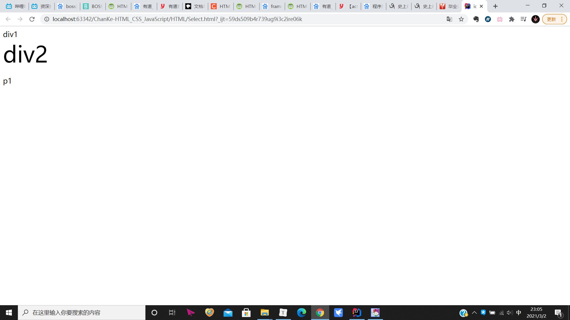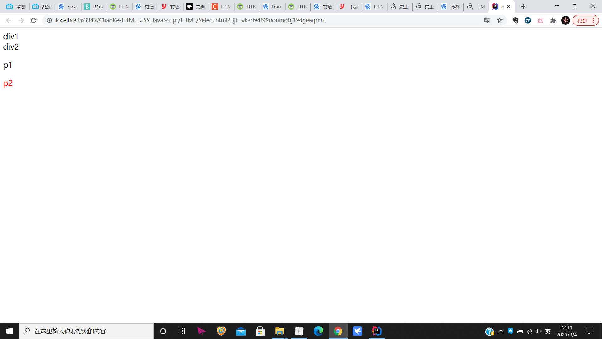 <!DOCTYPE html> <html lang="en"> <head> <meta charset="UTF-8"> <title>标签选择器</title> <link rel="stylesheet" href="BiaoQian.css"> </head> <body> <div> div1 <div>div2</div> <p>p1</p> </div> </body> </html>css