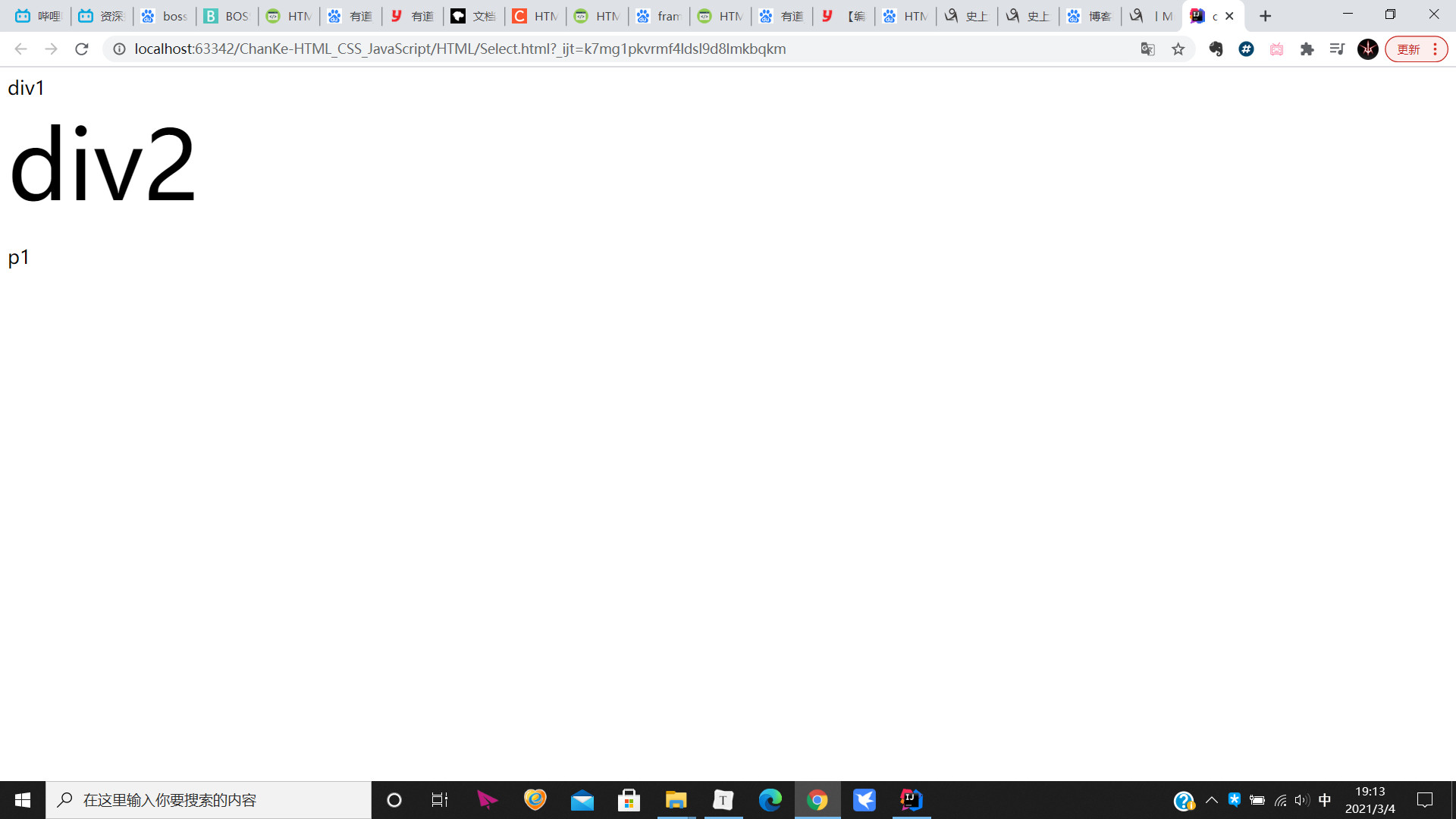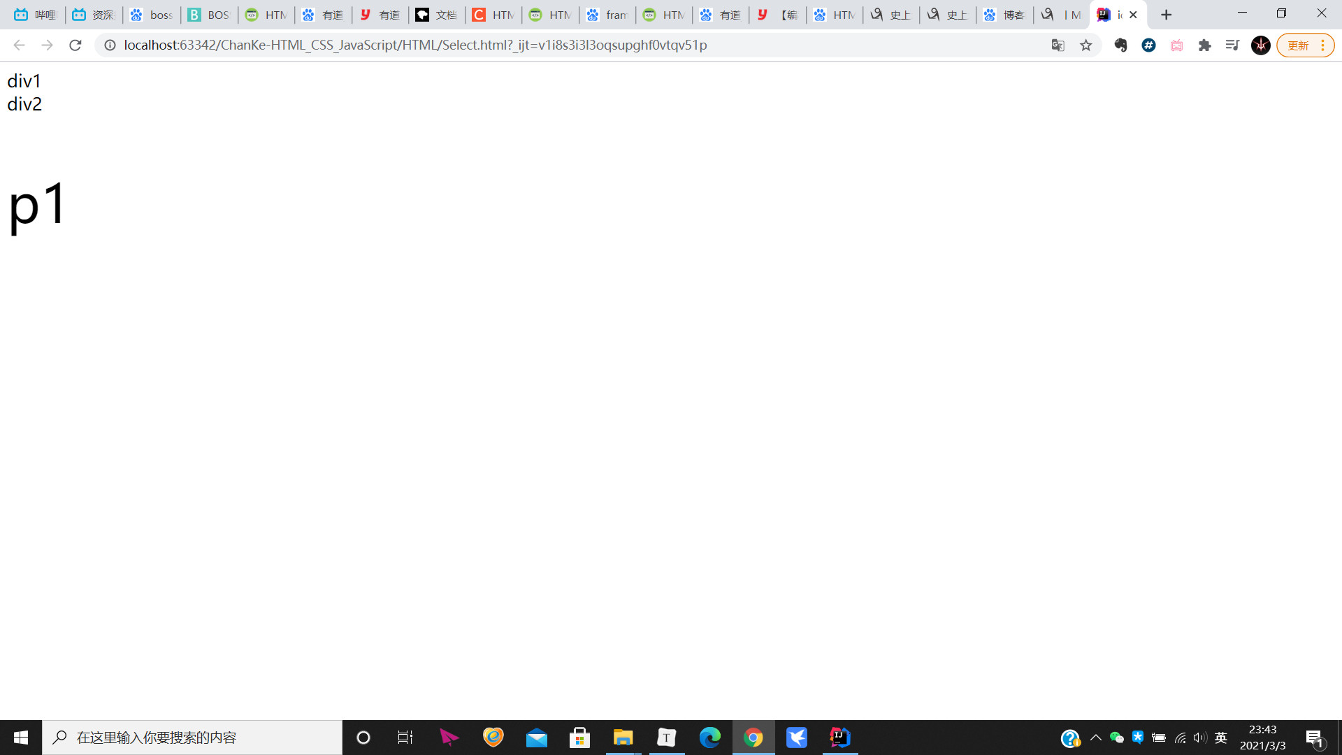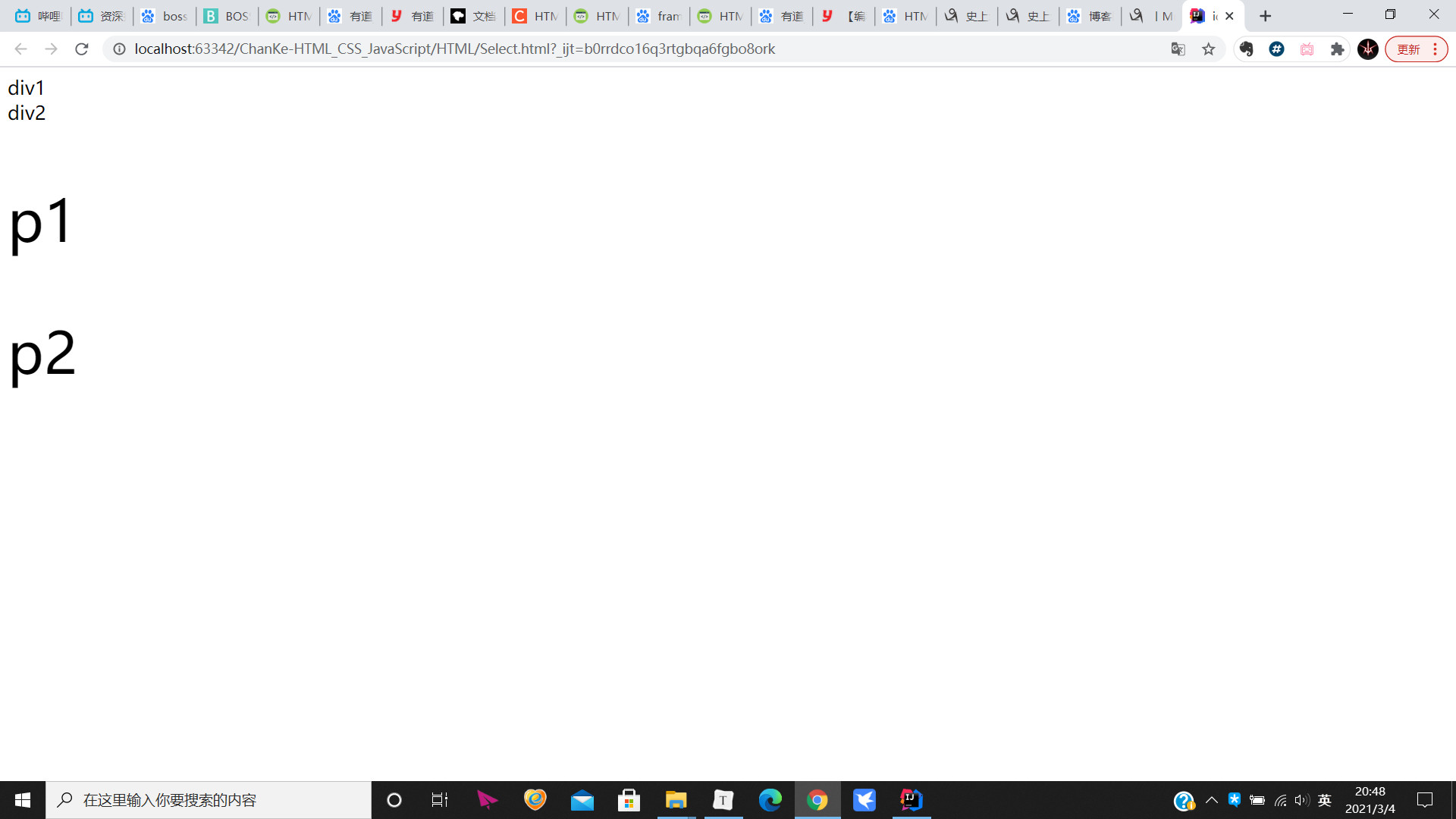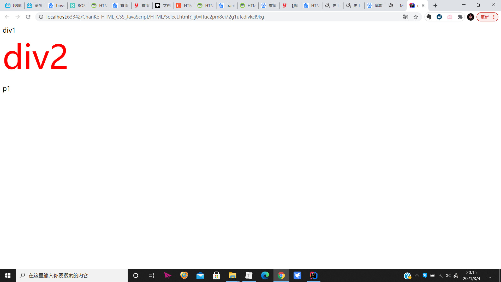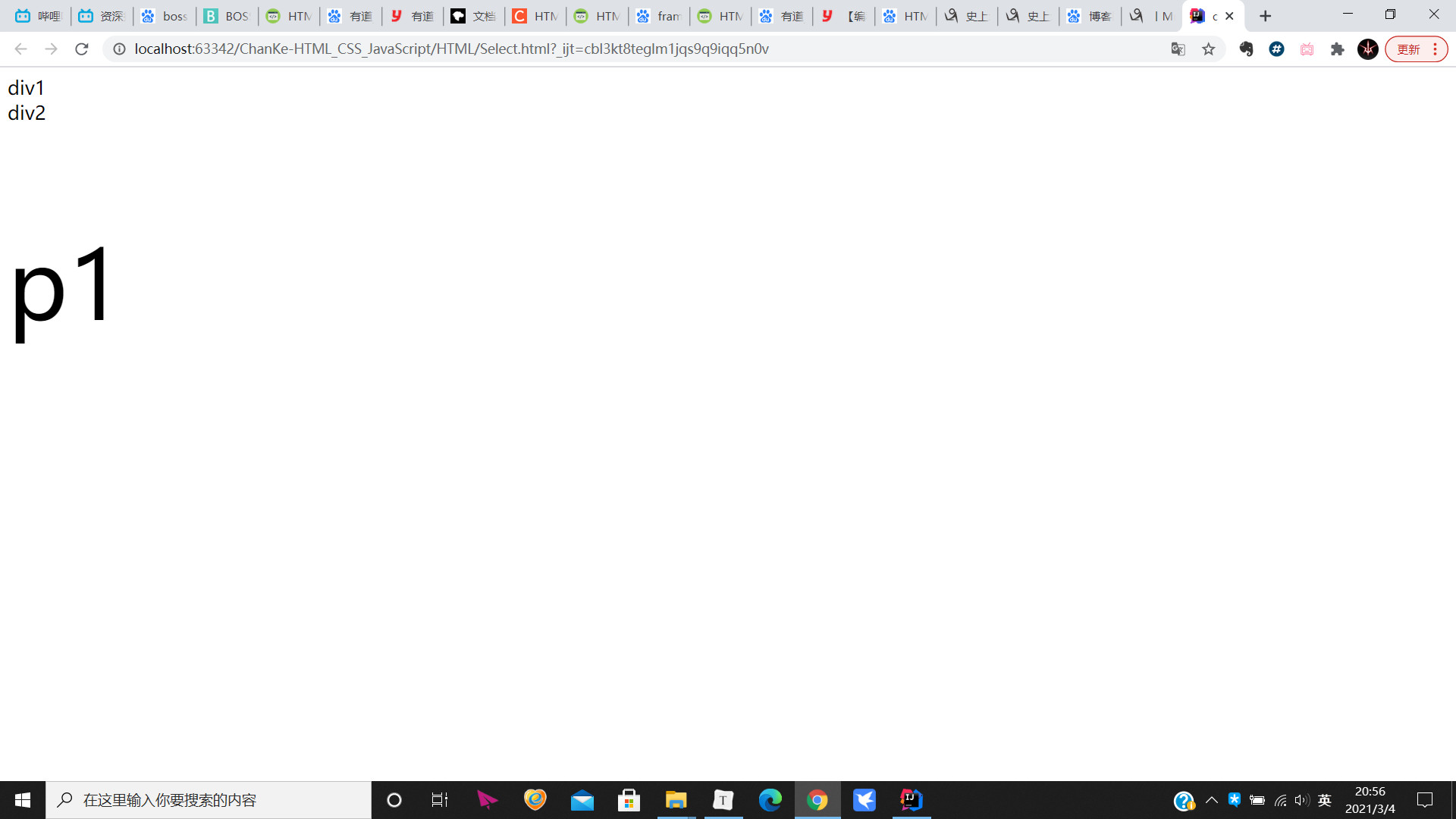 <!DOCTYPE html> <html lang="en"> <head> <meta charset="UTF-8"> <title>标签选择器</title> <link rel="stylesheet" href="BiaoQian.css"> </head> <body> <div> div1 <div>div2</div> <p>p1</p> </div> </body> </html>css