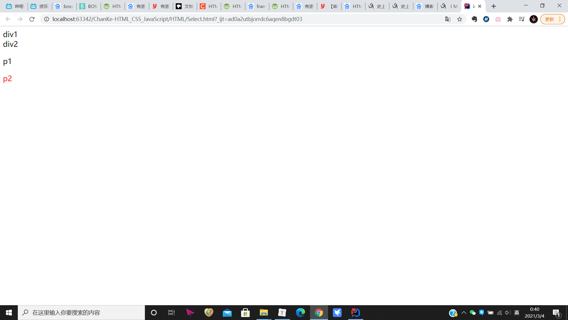 这里只有 标签和class值都符合的内容”p2“使用了样式,class值不符合的内容”p1“ 以及 标签不符合的内容”div1“、”“div2” 都无法使用样式。