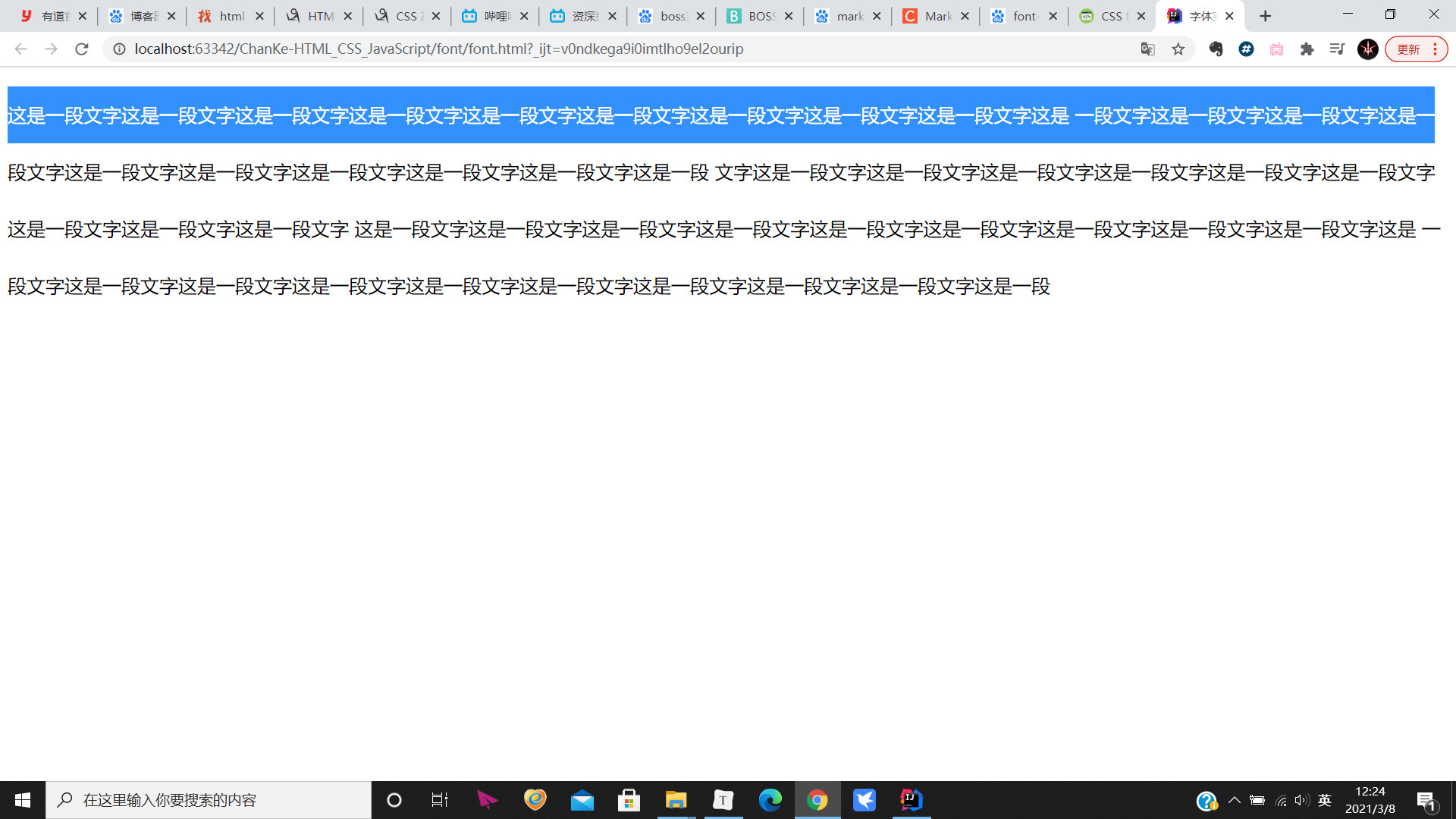 <!DOCTYPE html> <html lang="en"> <head> <meta charset="UTF-8"> <title>字体实例</title> <link rel="stylesheet" href="font.css"> </head> <body> <p> 这是一段文字这是一段文字这是一段文字这是一段文字这是一段文字这是一段文字这是一段文字这是一段文字这是一段文字这是 一段文字这是一段文字这是一段文字这是一段文字这是一段文字这是一段文字这是一段文字这是一段文字这是一段文字这是一段 文字这是一段文字这是一段文字这是一段文字这是一段文字这是一段文字这是一段文字这是一段文字这是一段文字这是一段文字 这是一段文字这是一段文字这是一段文字这是一段文字这是一段文字这是一段文字这是一段文字这是一段文字这是一段文字这是 一段文字这是一段文字这是一段文字这是一段文字这是一段文字这是一段文字这是一段文字这是一段文字这是一段文字这是一段 </p> </body> </html>css