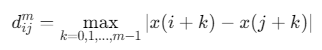 向量\(X_i^m\)与\(X_j^m\)的Chebyshev距离(最大绝对差):