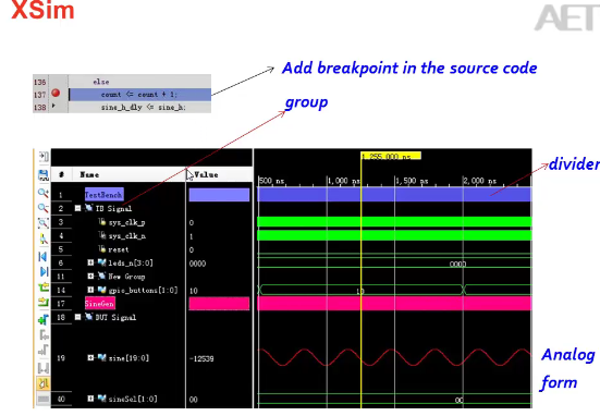 端点的设置、信号分组,分割栏目,体现模拟的波形