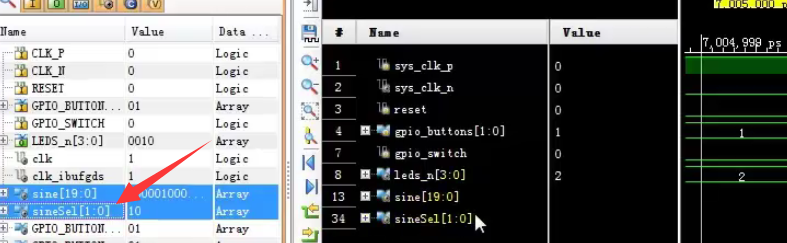 - 对应的仿真界面如下,弹出的信号波形是仿真文件顶层的信号