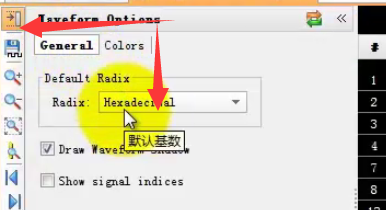 - 把新的信号拖进仿真窗口,在工具栏有个option可以设定缺省的进制