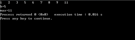 1 //1、二叉树的生成(以二叉搜索(排序)树为例,中序遍历是有序的) 2 3 #include <stdio.h> 4 #include <stdlib.h> 5 6 7 typedef struct node{ //定义节点的数据类型 8 int data; 9 struct node* left; 10 struct node* right; 11 } Node; 12 13 typedef struct { // 定义树的数据类型 14 Node* root; 15 } Tree; 16 void inorder(Node* node){ //中序遍历(二叉搜索树的中序序列是有序的):左 根 右 17 if(node!=NULL){ 18 inorder(node->left); 19 printf("%-4d",node->data); //node 是节点,调用data用node->data 而非 node.data 20 inorder(node->right); 21 } 22 } 23 // | 递归模型 f(node)=0; 24 int get_height(Node* node){ //求高度 | f(node)=MAX{f(node->left),f(node->right)}+1 25 if(node==NULL){ //| 26 return 0; 27 }else{ 28 int left_height=get_height(node ->left); 29 int right_height=get_height(node ->right); 30 return (left_height > right_height)?(left_height+1):(right_height+1);//返回左右子树最大的那个,然后加1(根节点那层) 31 } 32 } 33 34 int get_max(Node* node){ //求普通二叉树的最大值 假设全是正数 (二叉搜索树的更简单,就在最右边) 35 if(node==NULL){ 36 return -1; //若节点为空,返回-1 37 }else{ 38 int left_max=get_max(node->left);//分别获取左右子树的最大值 39 int right_max=get_max(node->right); 40 int max=node->data; //获取根节点的值 41 42 int temp =(left_max>right_max)?left_max:right_max; //进行比较,返回3个数中最大的那个 43 return (temp>max)?temp:max; 44 } 45 46 } 47 48 void insert(Tree* tree,int value){ //构建二叉树 49 Node* node= malloc(sizeof(Node)); //node 是个指针 50 51 node -> data = value; //初始时根的左右子树全为空 52 node -> left = NULL; 53 node -> right = NULL; 54 55 if(tree->root == NULL){ 56 tree->root=node; //如果根节点为空(这个数是第一个数),则插入这个数 57 }else{ 58 Node* temp=tree->root; //temp:临时节点,即当前所比较的节点 59 while(temp!=NULL){ 60 if(value < temp->data){ //如果比根节点小 ,插在左子树上 61 if(temp->left==NULL){ 62 temp->left=node; 63 return; 64 }else{ 65 temp=temp->left; 66 } 67 }else{ //如果比根节点大,插入在右子树上 68 if(temp->right==NULL){ 69 temp->right=node; 70 return; 71 }else{ 72 temp=temp->right; 73 } 74 } 75 } 76 } 77 } 78 79 int main() 80 { 81 int arr[9]={3,7,8,2,5,11,9,1,6}; 82 Tree tree; 83 tree.root=NULL; 84 for(int i=0;i<9;i++){ 85 insert(&tree,arr[i]);//依次插入各个节点 86 } 87 inorder(tree.root); //中序输出 88 printf( "\nh=%-4d",get_height(tree.root) ); //输出高度 89 printf( "\nmax=%-4d",get_max(tree.root) ); //输出最大值 90 91 92 return 0; 93 }