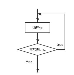 先执行某语句, 再判断布尔表达式,如果为true,再执行某语句,如此反复,直到布尔表达式条件为false时才停止循环,比如do-while循环。