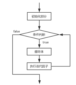 结构:for (初始表达式; 布尔表达式; 迭代因子) { //A. 初始化部分设置循环变量的初值 B. 条件判断部分为任意布尔表达式 C. 迭代因子控制循环变量的增减