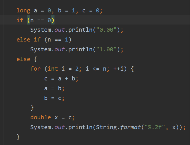 我们用三个变量 a b c组成一个循环,一直累加,直到求出需要的项