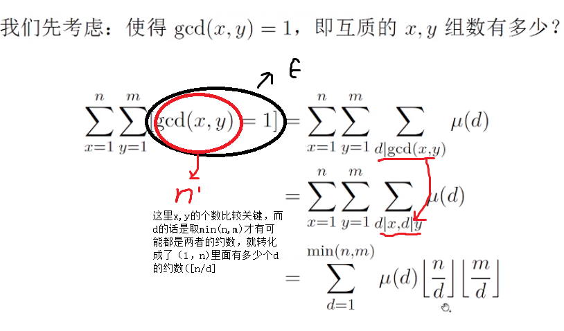 1.经典问题:求解gcd(x,y)=1,也就是互质的x,y组数有多少组(x 1,n, y 1,m)