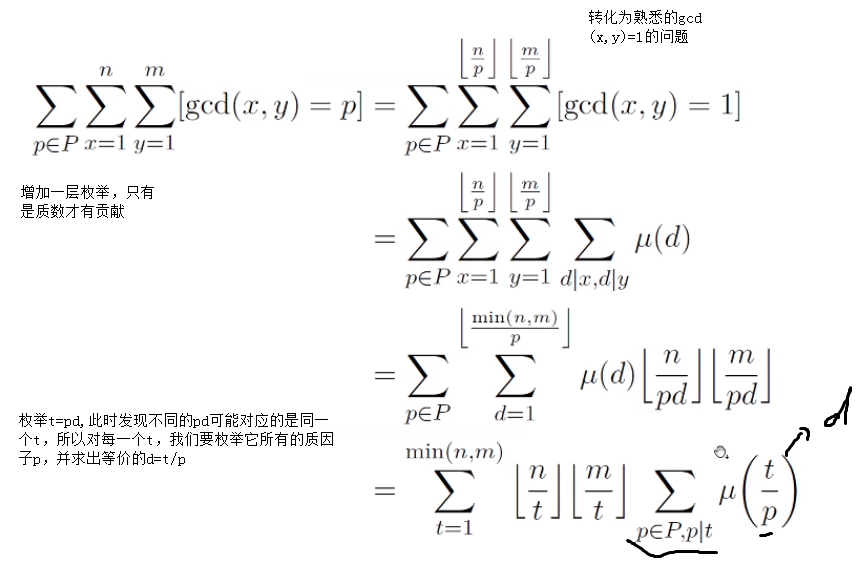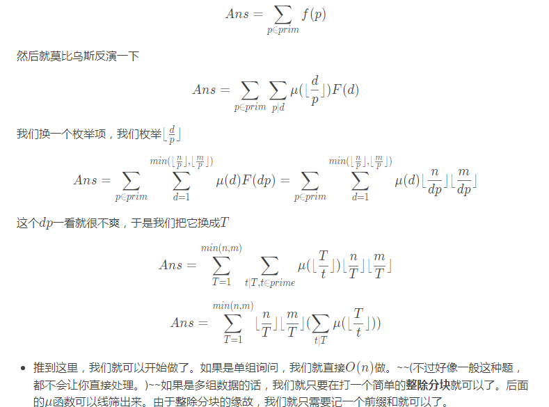 这是较为基础的推导,之后的话我们还是需要设置函数老老实实莫比乌斯反演。具体如下